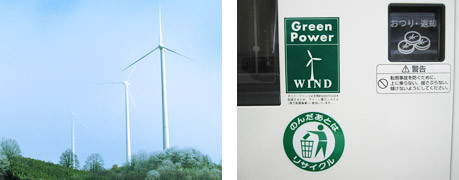 In 2002, DyDo DRINCO became the first company in the beverage industry to participate in the Green Power Certification System. Through this system, natural energy generation is outsourced for a cost, and in return a certificate is issued and the customer is recognized as having used green energy. DyDo DRINCO-commissioned windmills (Akita Prefecture) have continued operating since the company's initial participation in the system, and their annual power generation of approximately 1 million kWh of clean energy contributes toward conservation of fossil fuels and reduction of CO2 emissions.