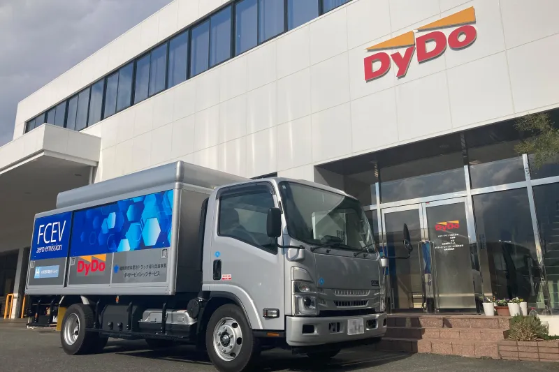 2024年9月に当社グループとして初のEV(電気)トラックを、同年12月 にはFC(燃料電池)トラック※を試験的に導入しました。今後も自販機 ビジネスにおけるカーボンニュートラルをめざすため、EVトラックなど の拡大の可能性に向けた様々な検証を検討、実行していきます。